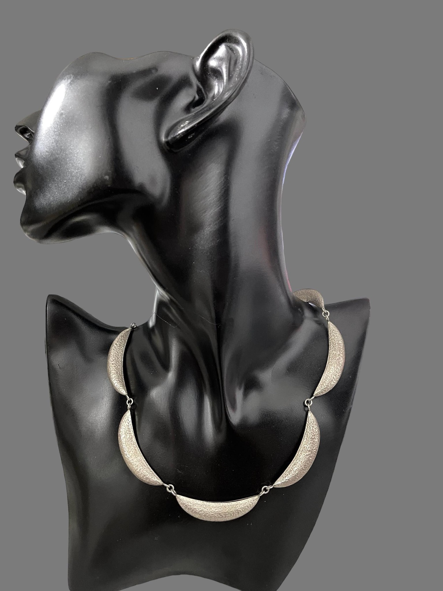 ART -DECO – Colier din argint , lucrat manual,manopera minutioasa -lovitura de ciocan- perioada anilor 1920- stare impecabila