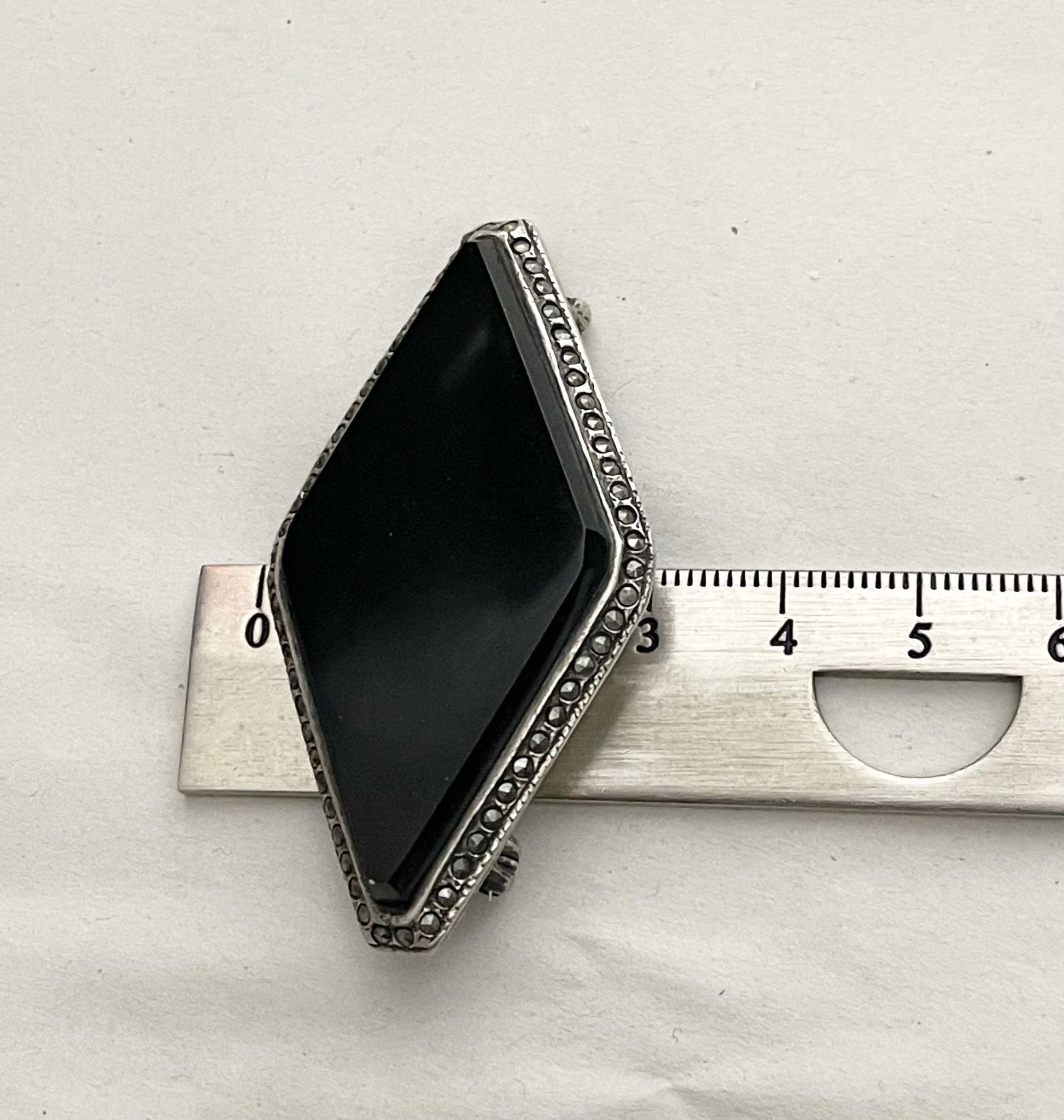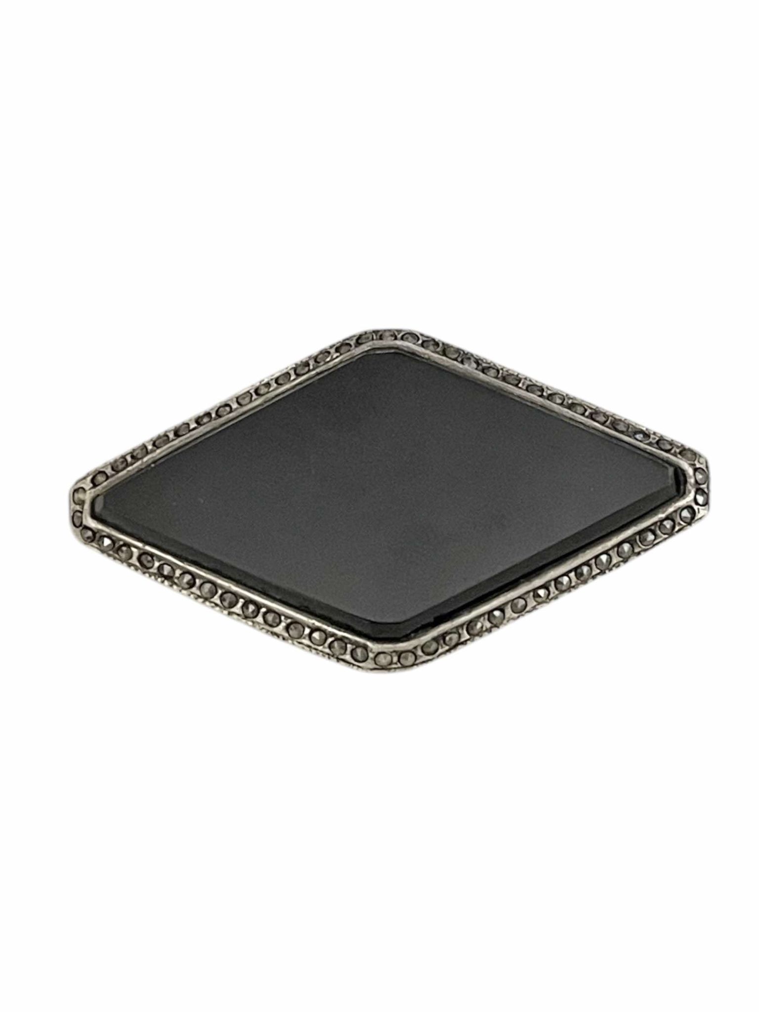 Brosa vintage din argint 925 cu ONIX NEGRU