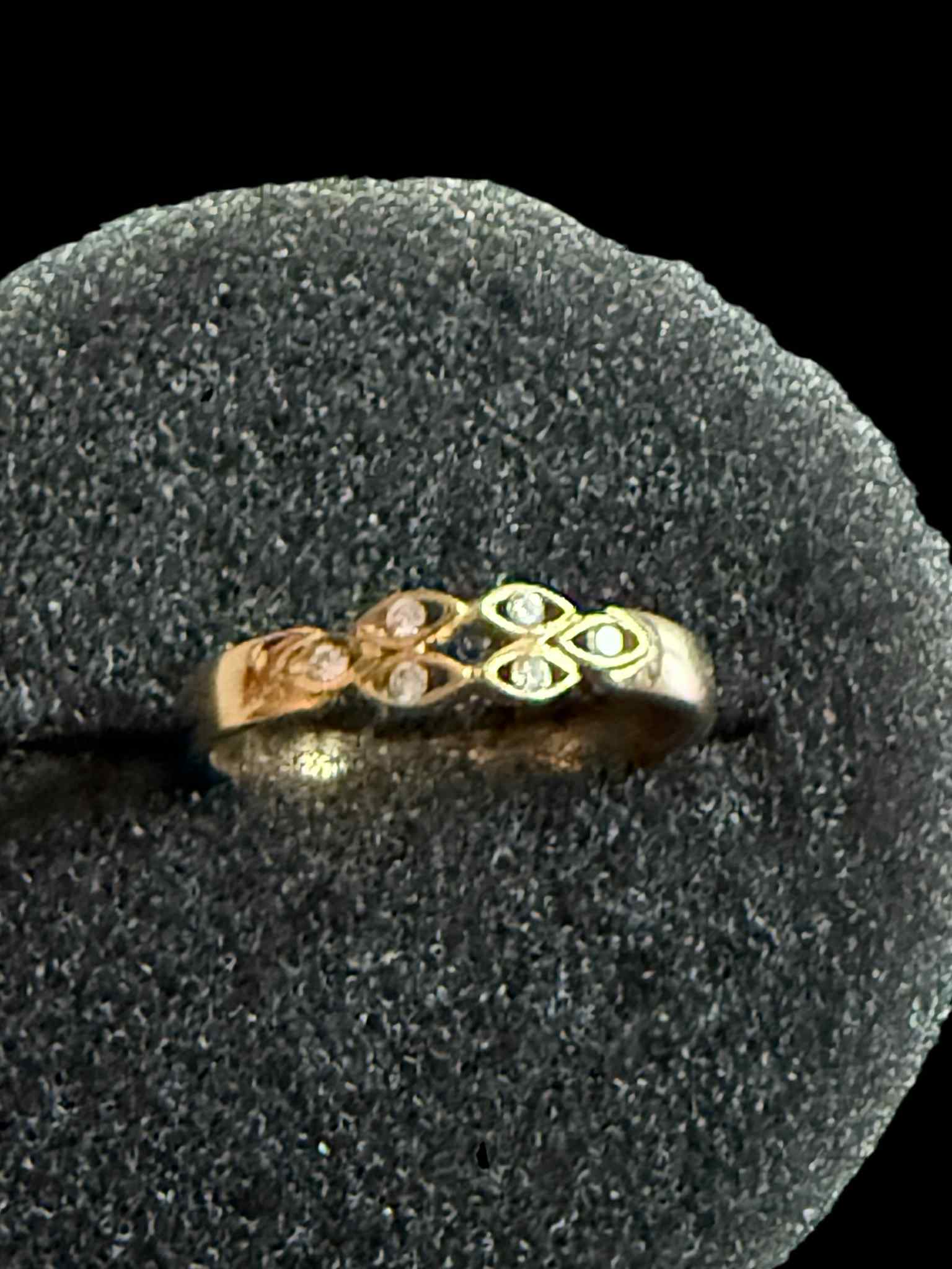 Inel vechi din AUR 14 K , marcaj 585 , incastrat cu DIAMANTE NATURALE