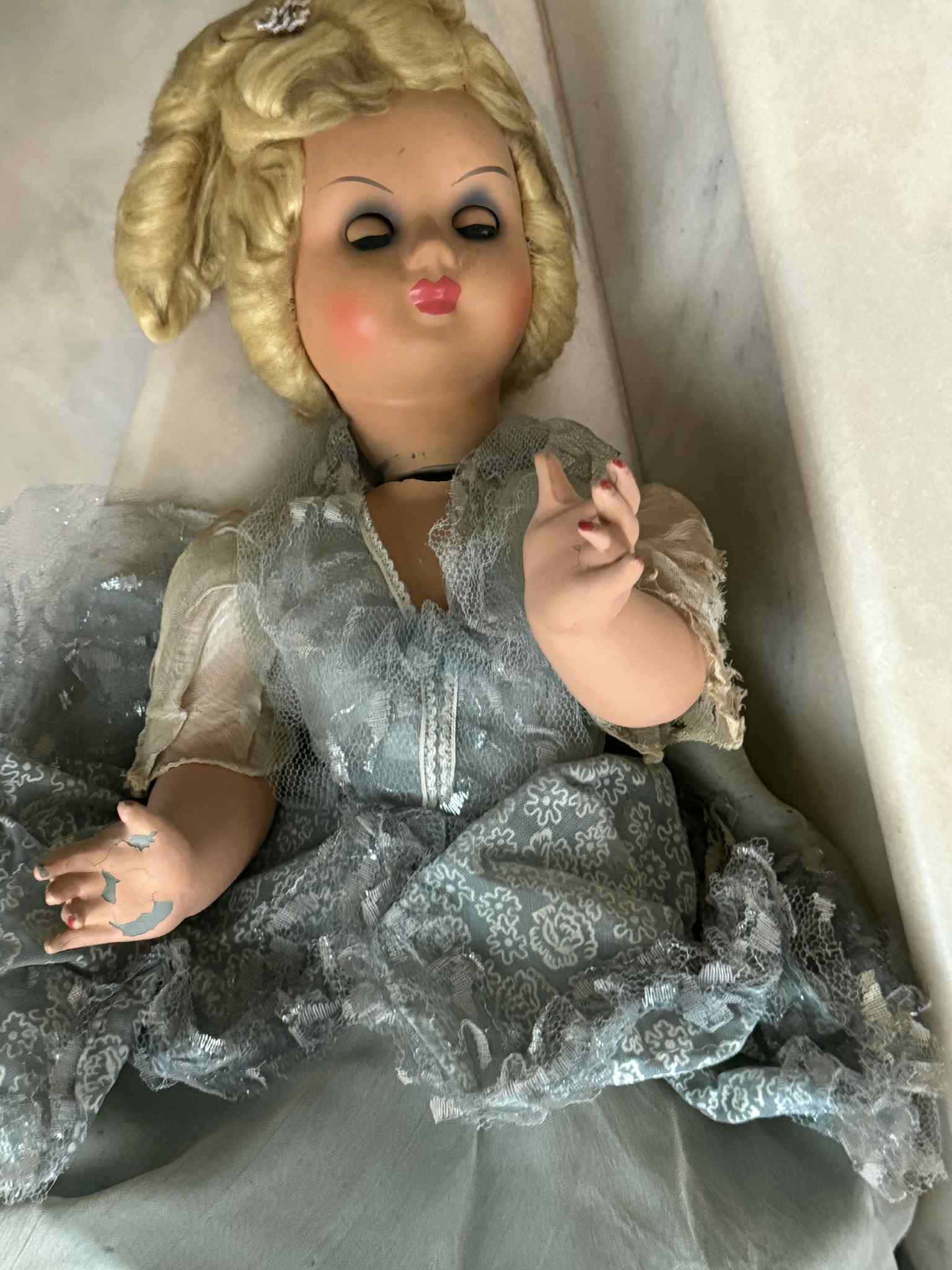 – rochia din tafta /organza cu dantela – desigur in stare foarte proasta de la trecerea anilor